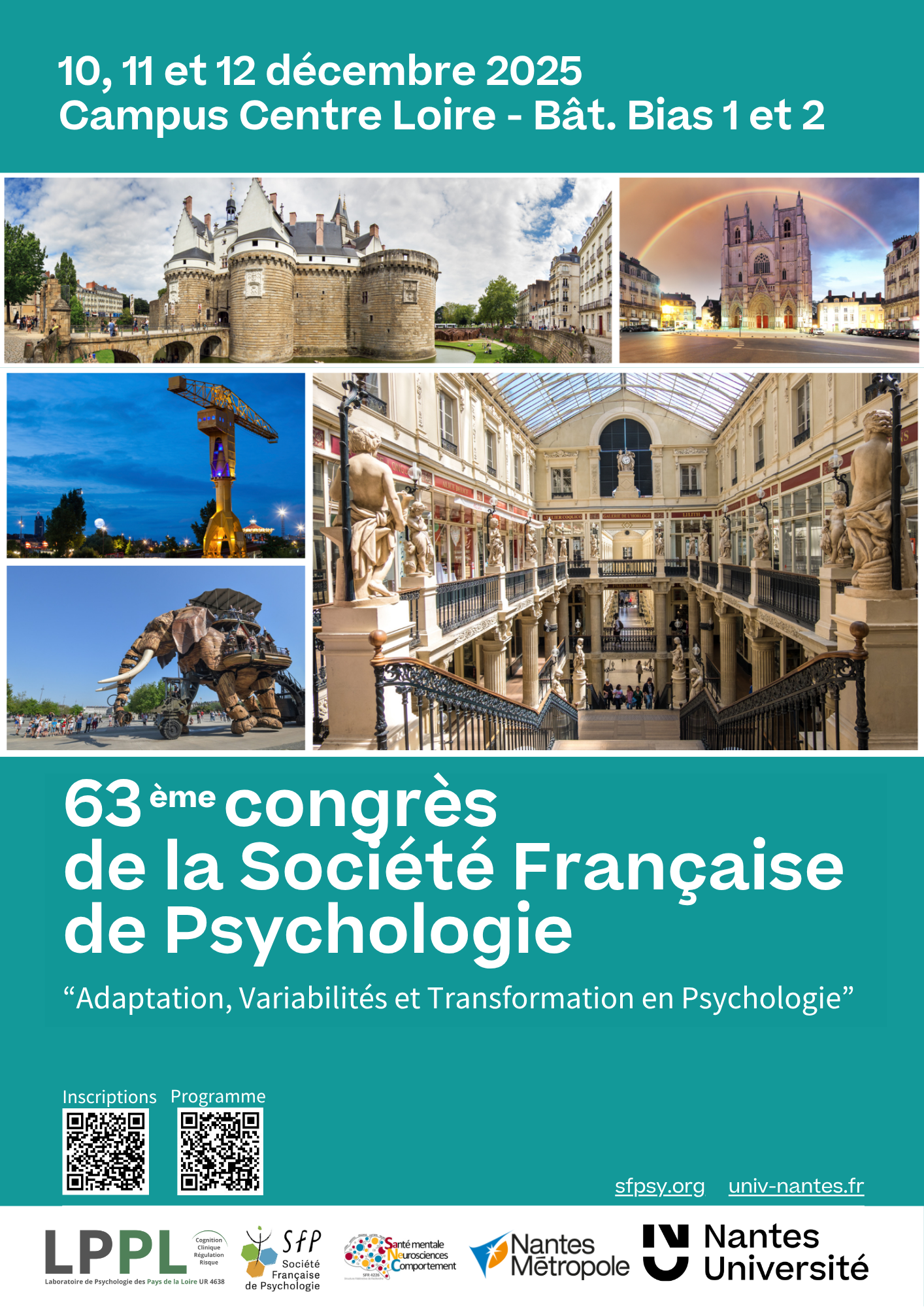 La Société Française de Psychologie et le LPPL ont le plaisir de vous convier au 63ème congrès de la SFP.