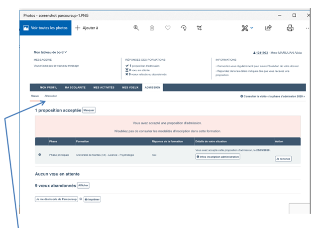 J'ai bénéficié d'un changement de formation dans PARCOURSUP après mon inscription